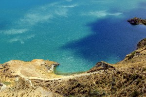 The scenery is striking, in these high paramos you really feel closer to the sky, the clouds and the stars. Destination #1 was the lake Quilotoa, an 820ft-deep lake in the crater of the western-most volcano in the Andes. Eight hundred years ago the volcano erupted leaving a blanket of ash across the region and sending lava flows all the way to the pacific. The remnants are evident in the geological cross sections along the road side. Now the crater is filled with alkaline water that appears a deep greenish blue.