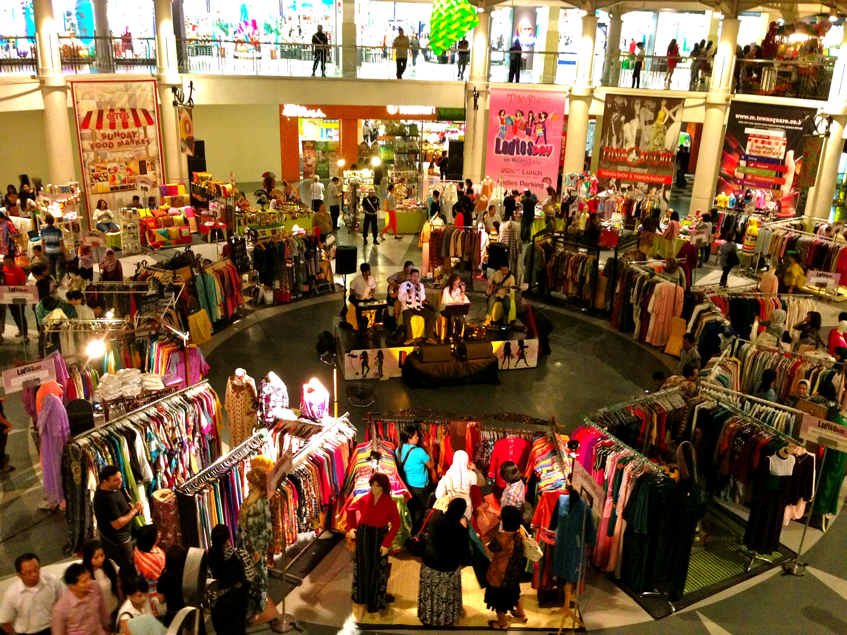 In the interest of sharing a little more on the last post, “It’s beginning to look a lot like Lebaran” (see below), I thought I would share these photos of the Lebaran excitement. We took these one evening in a mall that stays open late to accommodate Lebaran shopping. To draw shoppers, the mall is holding concerts after the breaking-fast time every evening. At the supermarkets, many Lebaran decorations focus on the packages of fancy dates for sale, as these are the traditional snack for breaking fast, eaten right at sundown, along with sweet tea.