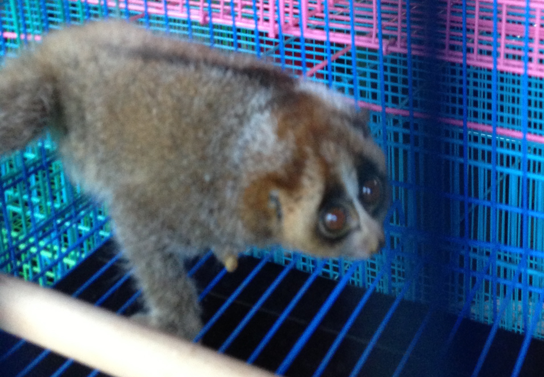 Jakarta’s bird markets trade mammals and reptiles, too. Many protected animals slip through these markets undetected (or ignored) by law enforcement. In the Jakarta market, one man tried to sell us a slow loris, a small endangered primate native to Indonesia’s forests. It stared up at us with fearful large eyes. A local animal-rights NGO found that 183 protected species were traded at the 70 animal markets in Java. Many of these were parrots and protected songbirds.