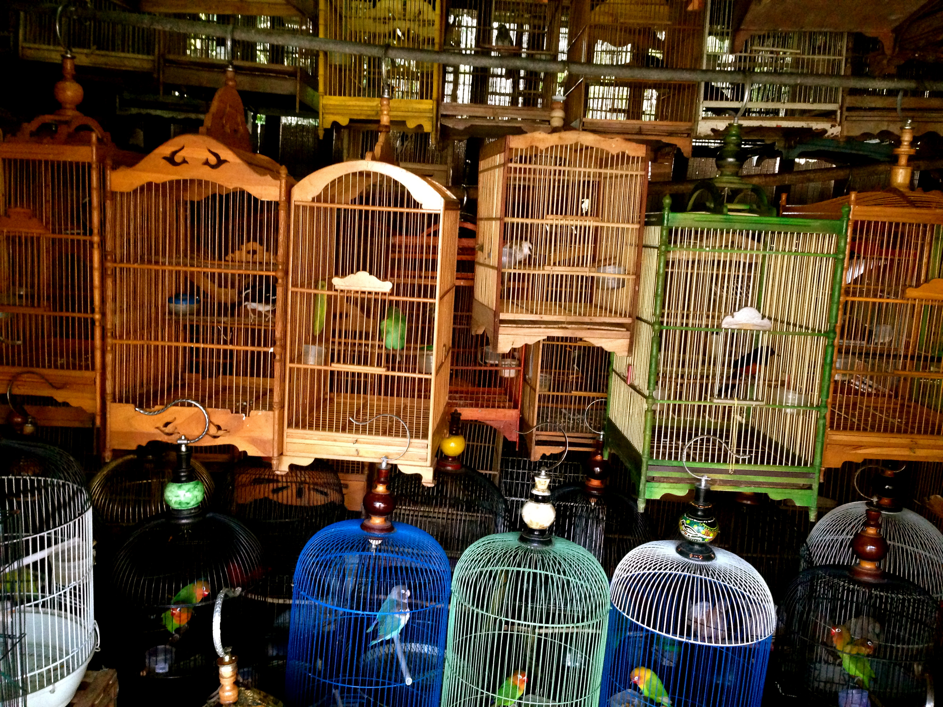 A noisy chorus of birdsongs enlivens Jakarta’s dirty, crowded streets. In this city, birdcages hang from telephone wires, tree limbs, and awnings. I see dozens of caged birds a day in Jakarta: canaries, thrushes, doves and lesser-known wild songbirds of every kind.